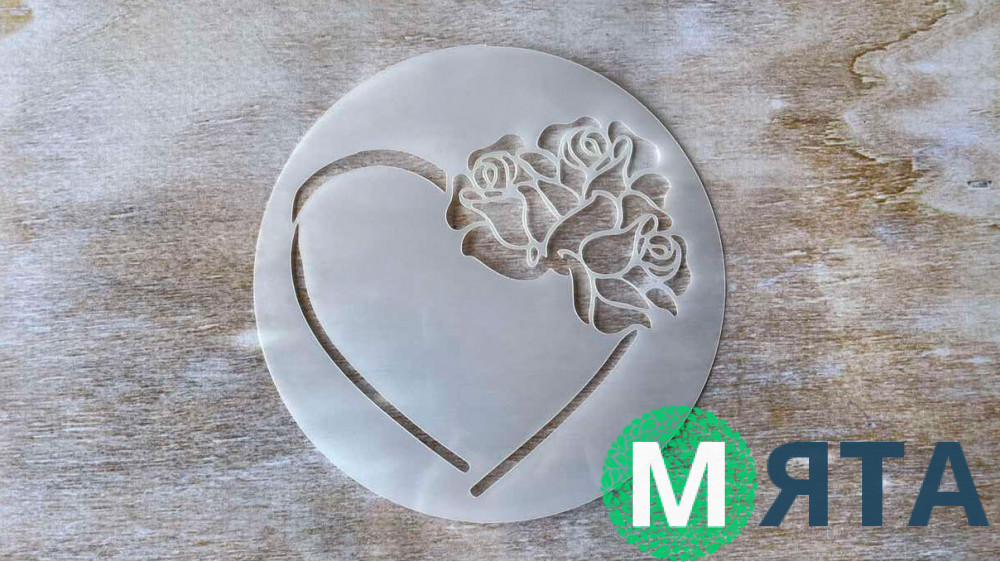 Трафарет Сердце +3 розы, 12 см