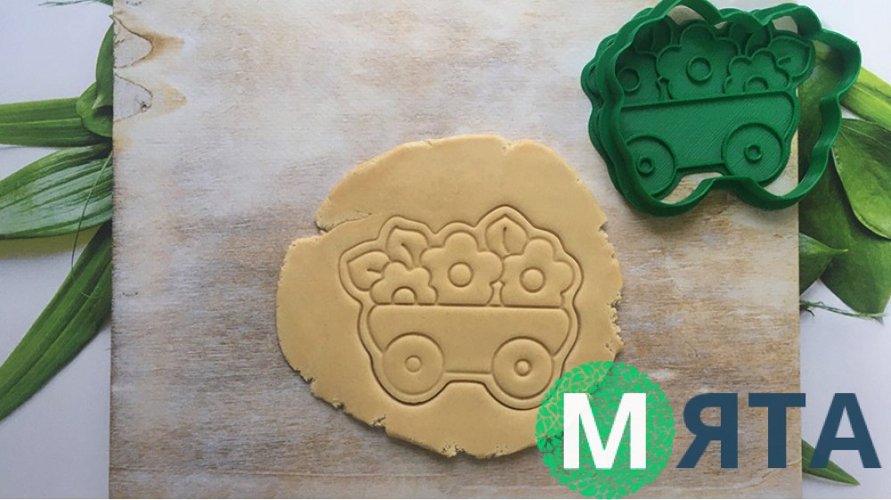 Вырубка + штамп Тележка с цветами