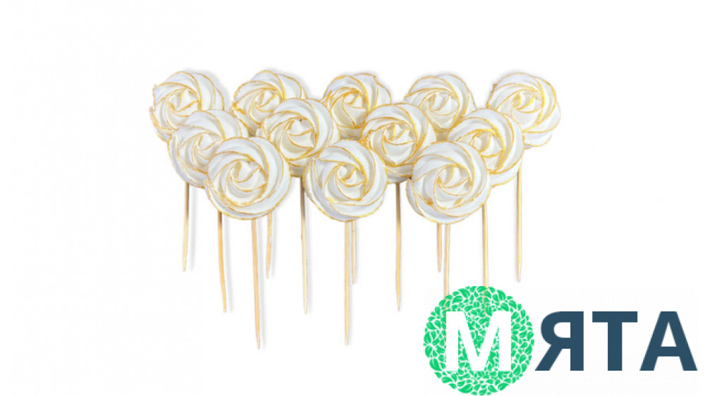 Безе на паличці біле із золотим контуром - готовий цукровий декор або самостійні ласощі.