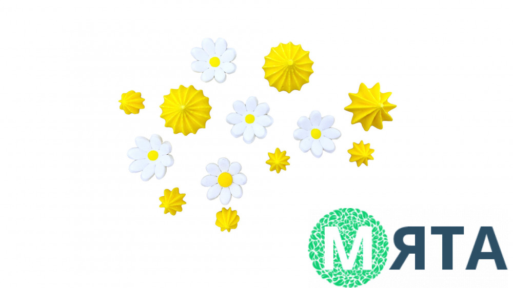 Розмір ромашок 5см, безе - три по 2см і п'ять по 1см
