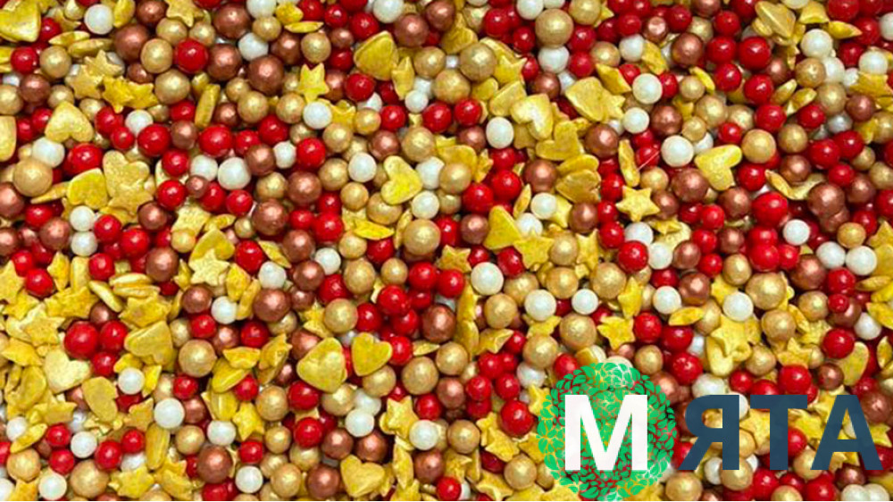 Цукрове посипання Мікс з кульками №25. Червоний/Золотий