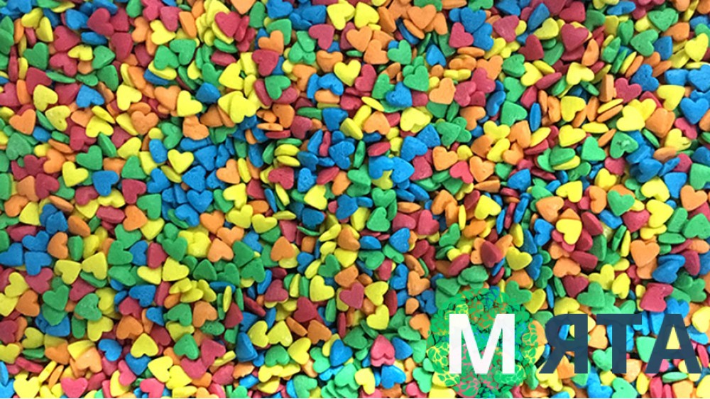 Райдужна цукрова посипка у вигляді великих сердець стане чудовим декором для Вашого святкового кондитерського виробу та повністю довершить його образ. Завдяки таким яскравим прикрасам можна навіть звичайнісіньку і нічим не примітну випічку перетворити на справжній кондитерський шедевр, піднявшись тим самим до рівня найкращих професіоналів кулінарії. Ними також можна не тільки посипати свої кондитерські вироби, а ще з їхньою допомогою Ви з легкістю зможете створювати, наприклад, красиві візерунки, написи і навіть малюнки з цукрових сердець - абсолютно все, з чим Вам тільки може захотітися поекспериментувати і на що вистачить Вашої фантазії та творчих ідей. Такий вид декору є, звичайно, одним з найпростіших у своєму використанні, але при цьому він дуже цікавий і забавний спосіб прикраси найрізноманітнішої випічки: тортів, кексів, пряничків, тістечка, капкейків і навіть морозива.
