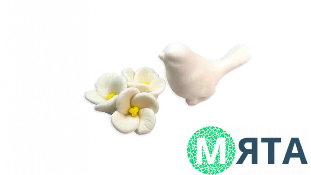 Розміри декору: пташка довжиною 5см, висотою 3,8см; букетик із трьох квіточок діаметром 4см.