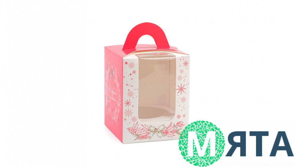 Коробка зі знімною вкладкою на 1 капкейк та новорічним принтом