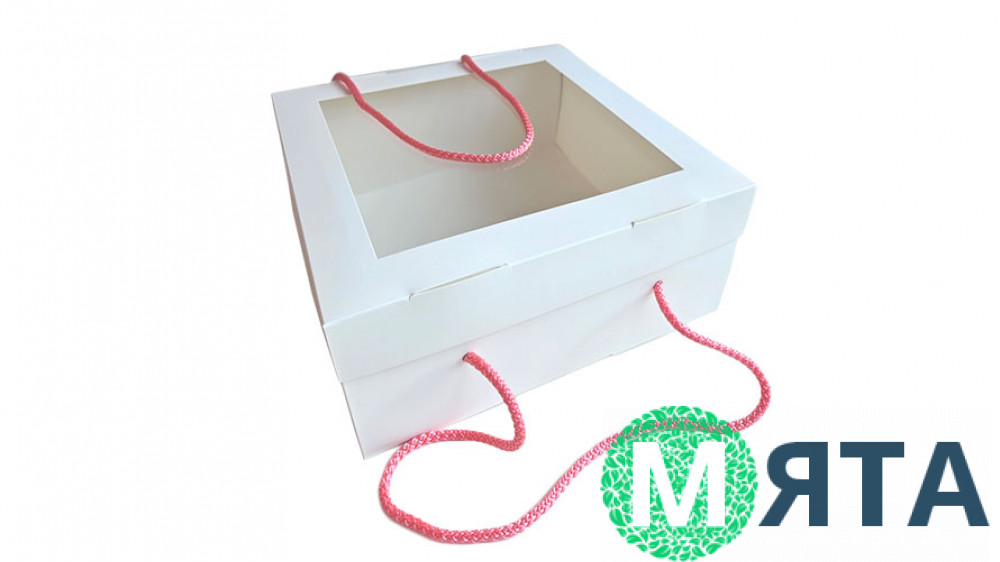 Коробка бокс для солодощів та подарунків з віконцем та ручками.